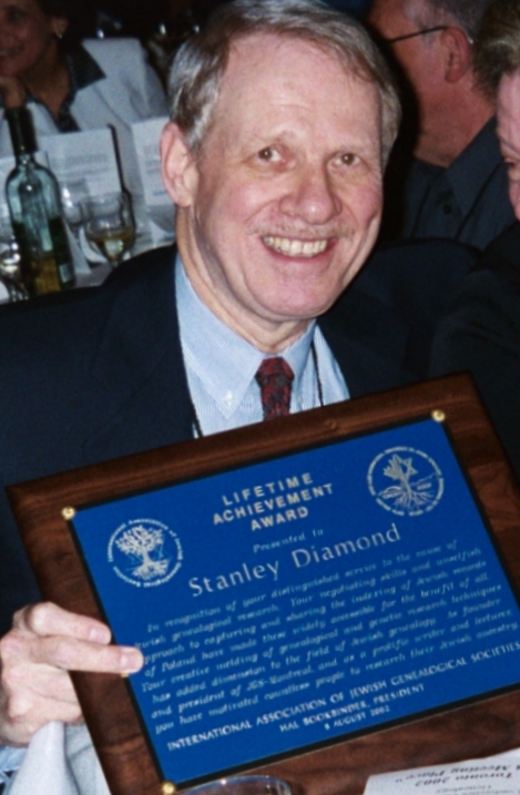 larger view of Stanley M. Diamond with IAJGS plaque.